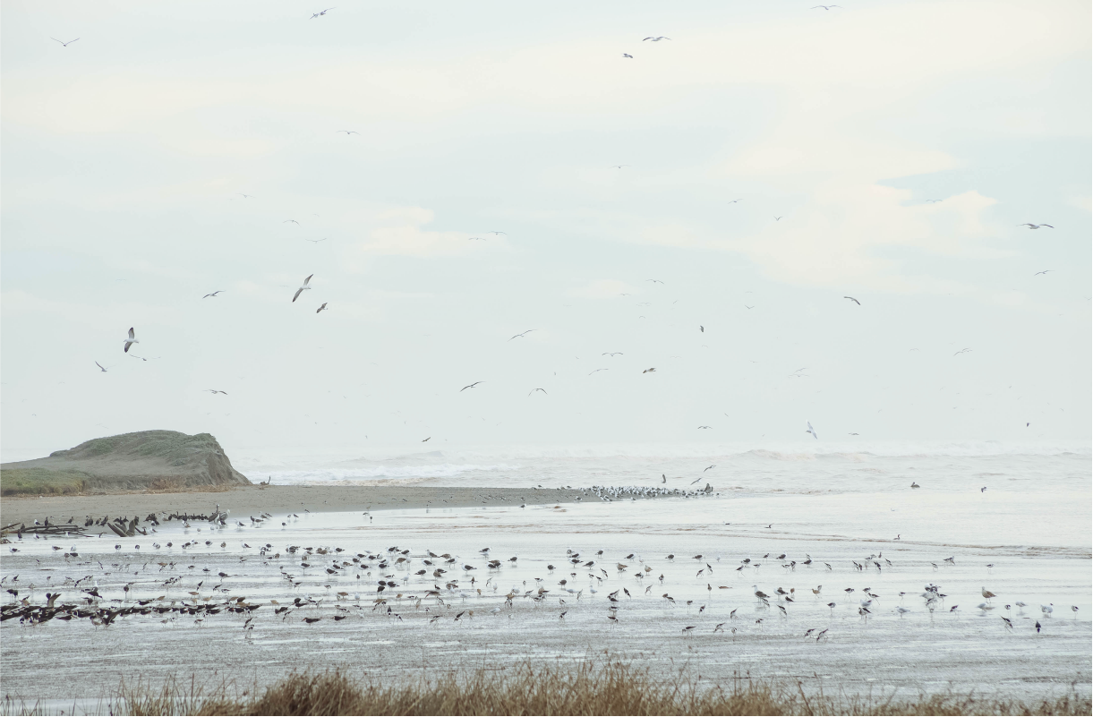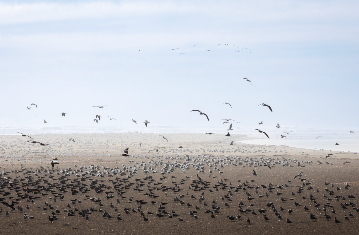 En este lugar confluye el río con el mar, formando a la vez en su borde planicies de fango y arena, donde se reúnen las aves en busca de alimento.